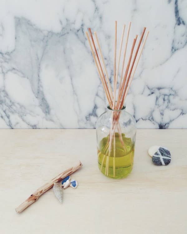 You don’t need fancy equipment for a room diffuser. Pour some baby oil into a small vase, mix in a few drops of your preferred essential oils, and place rattan reeds inside. The oil mixture travels up the reeds, releasing a gentle fragrance without heat or flame — a safer, longer-lasting alternative to candles.